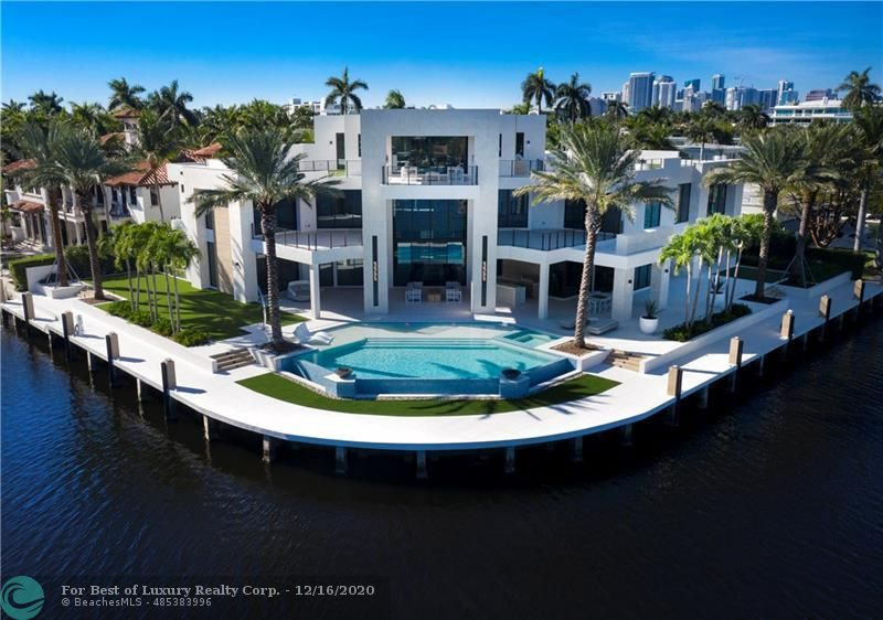 An exceptional estate on Las Olas Isles showcasing soaring ceilings, grand living areas, & refined architectural detail ...